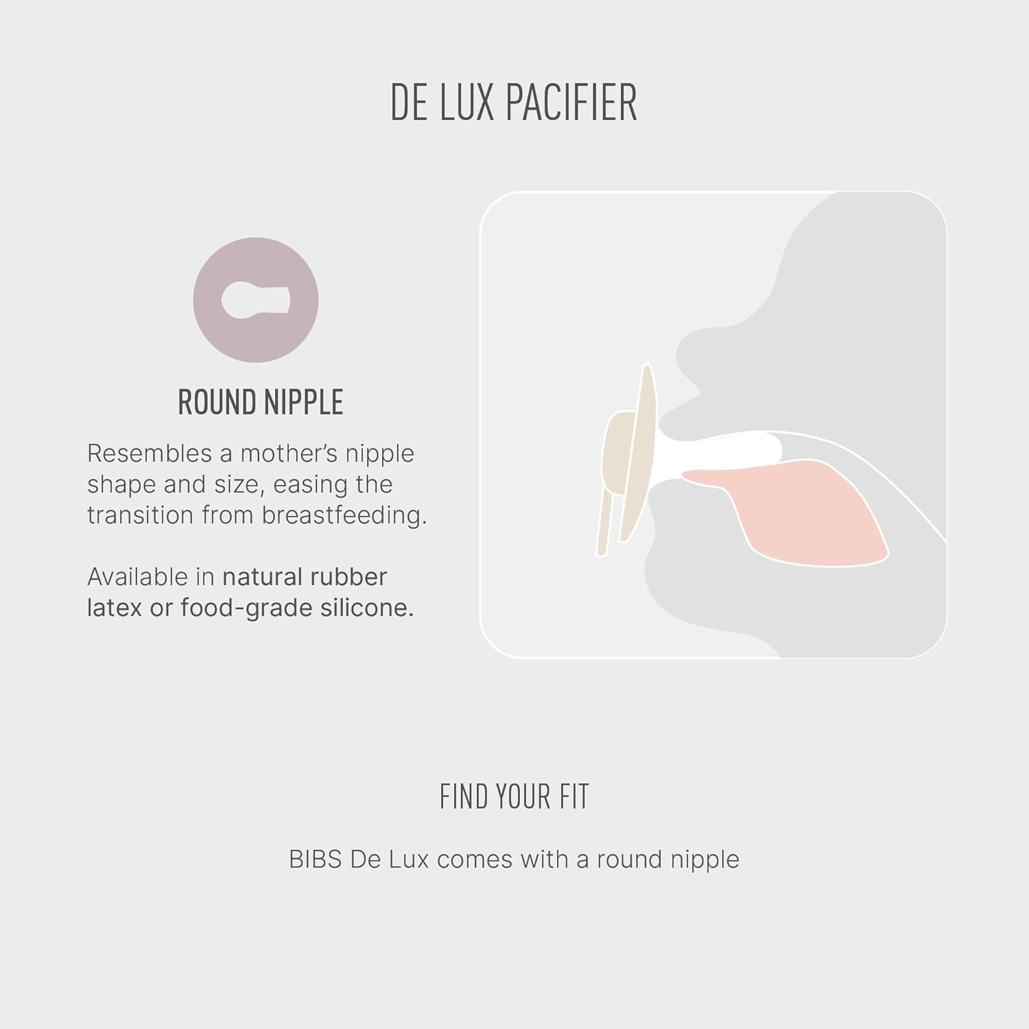 8 reviews for BIBS De Lux Liberty Soother 2-Pack, BPA Free Dummy Pacifier, Round Nipple. Silicone, Made in Denmark, OneSize (0-36 Months), Eloise Baby Blue