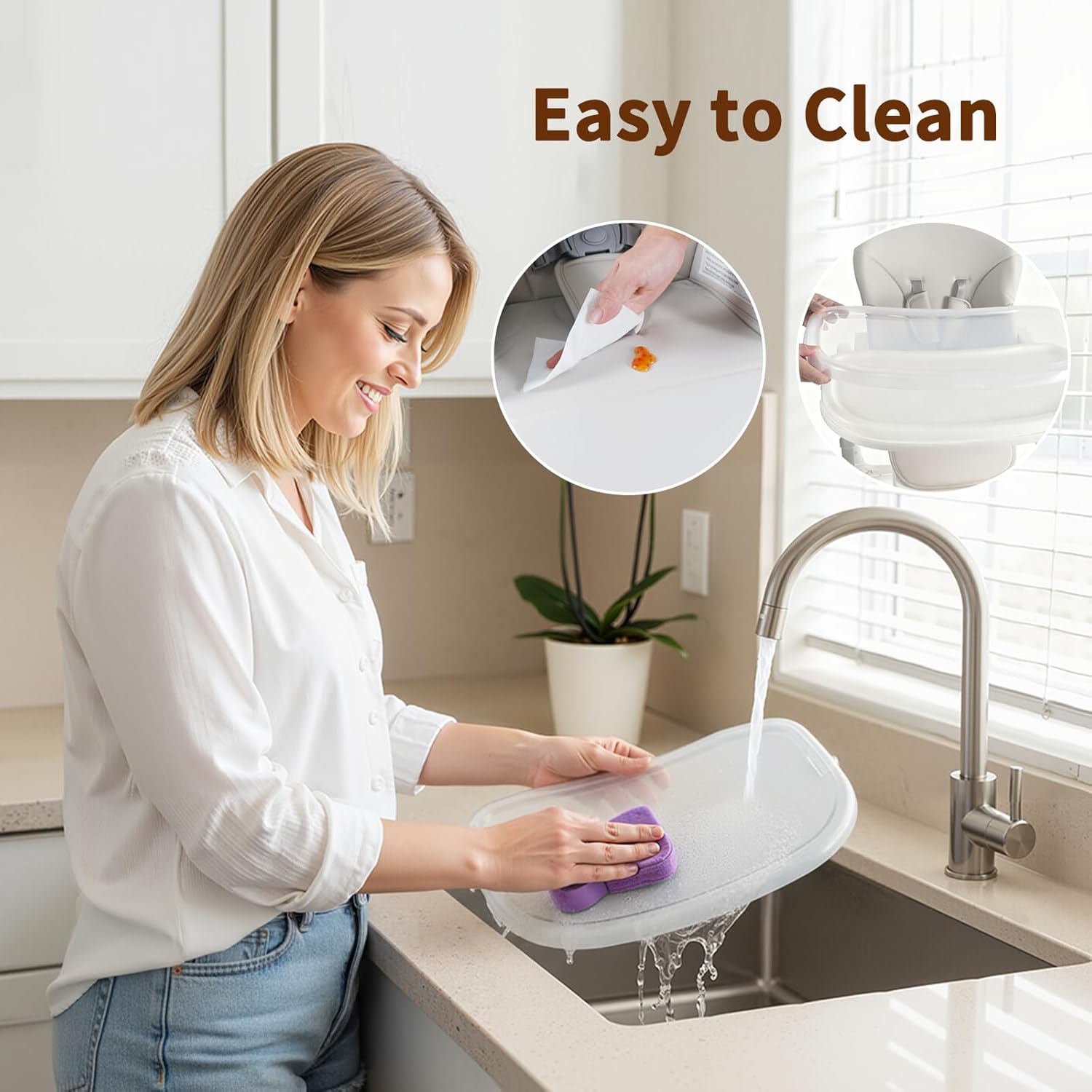 Wipeable Seat Cushion: The padded seat is soft and easily wipeable. No need for complicated cleaning—just a quick wipe keeps the high chair fresh and ready for next use