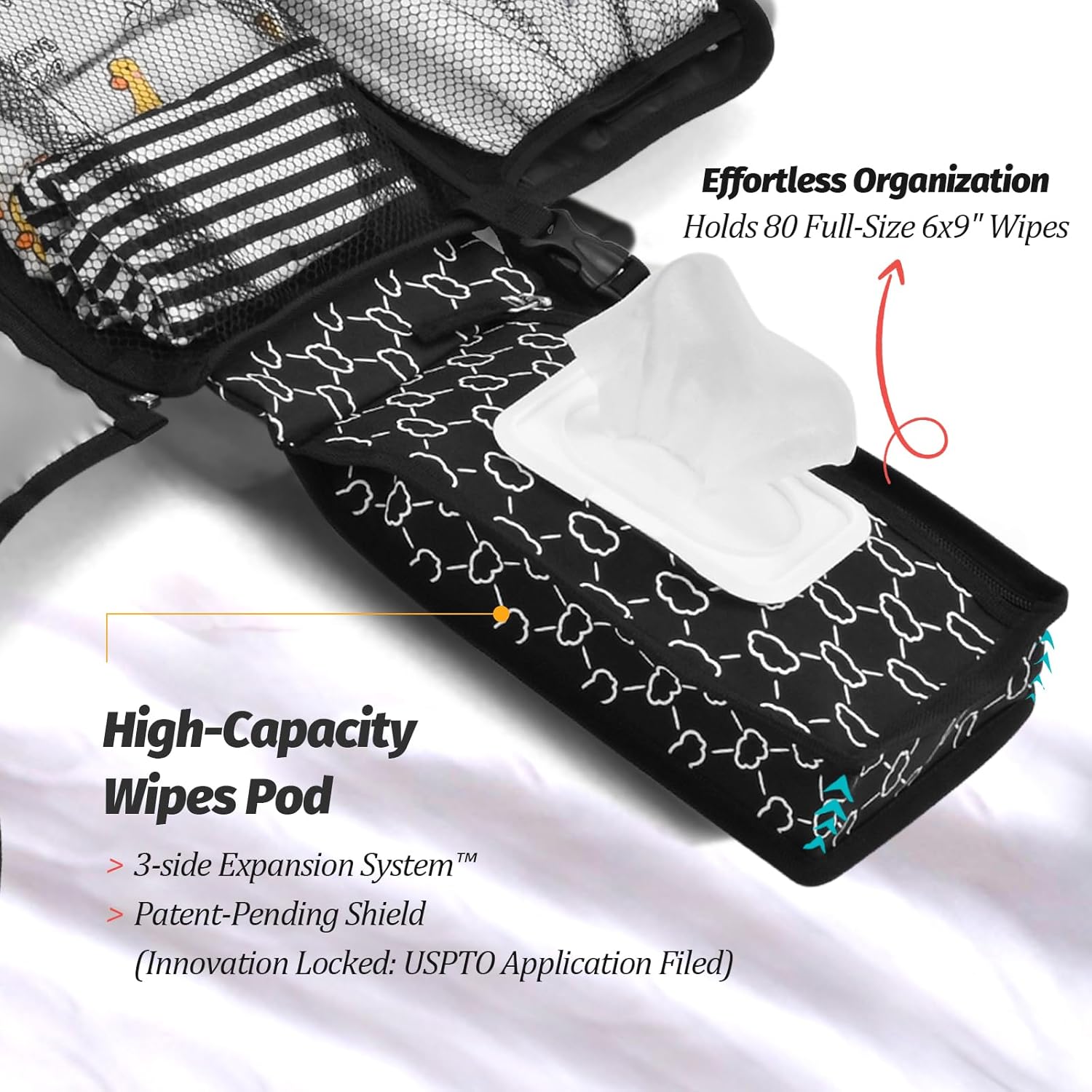 Travel Changing Mat with High-Capacity Wipes Pocket -The built-in wipes pod holds most pack sizes of wipes and features a 3-side expansion system. This travel baby changing pad gives you fast, easy wipes access. whether you’re using it as a portable changing mat or car seat diaper change pad.