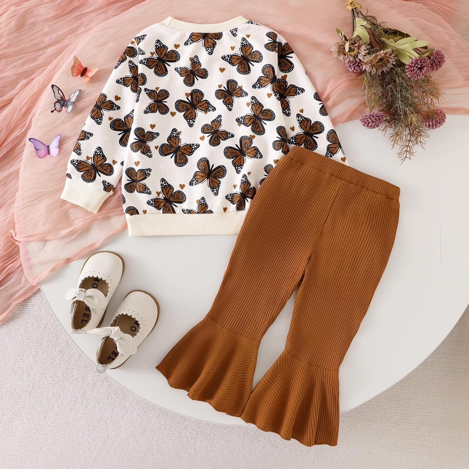 8 reviews for Toddler Girl Clothes Fall Winter Baby Outfits Cute Butterflies Print Sweatshirt + Flared Pants Set 2 Piece 1-6 Years
