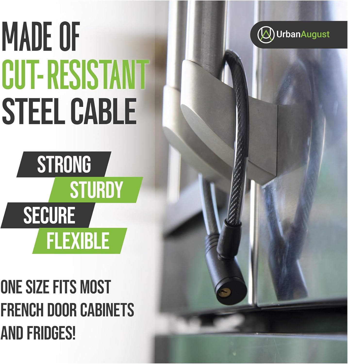 Our secure French door or side by side refrigerator lock is made from stainless steel cable and a high-quality lock and is optimal for safeguarding access to your refrigerator or cabinet. For Door handles with a diameter up to 44cm (17.5 Inches)